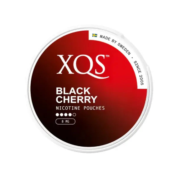 XQS Black Cherry nicotine pouches are available in a nicotine strength of 8mg per pouch – the equivalent of 16mg per gram.