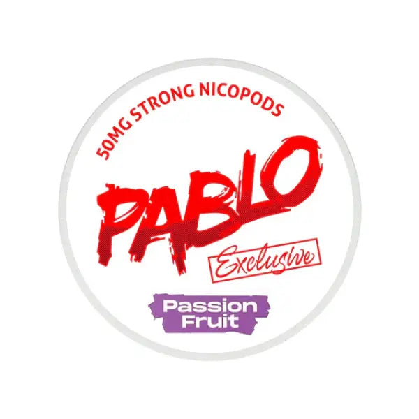Pablo Exclusive Passion Fruit nicotine pouches are available in a nicotine strength of 30mg per pouch – the equivalent of 50mg per gram of nicotine.