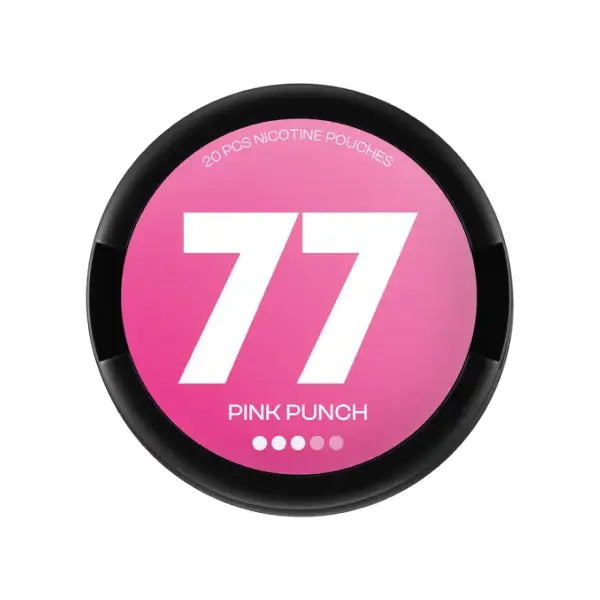 77 Pink Punch nicotine pouches are available in a nicotine strength of 10.4mg per pouch.