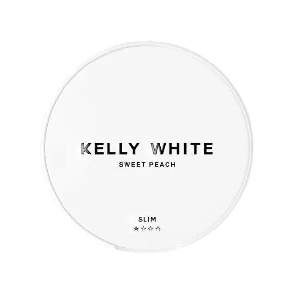 Kelly White Sweet Peach nicotine pouches are available in a slim format with 4 mg of nicotine per pouch and a mini format with 6 mg per pouch. Both options are designed for discretion and comfort during use.