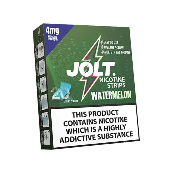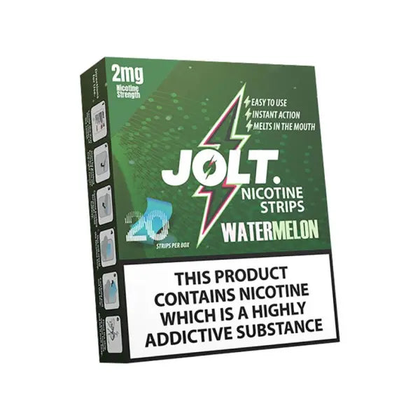 JOLT Watermelon nicotine strips are available in two strengths: 2mg and 4mg.